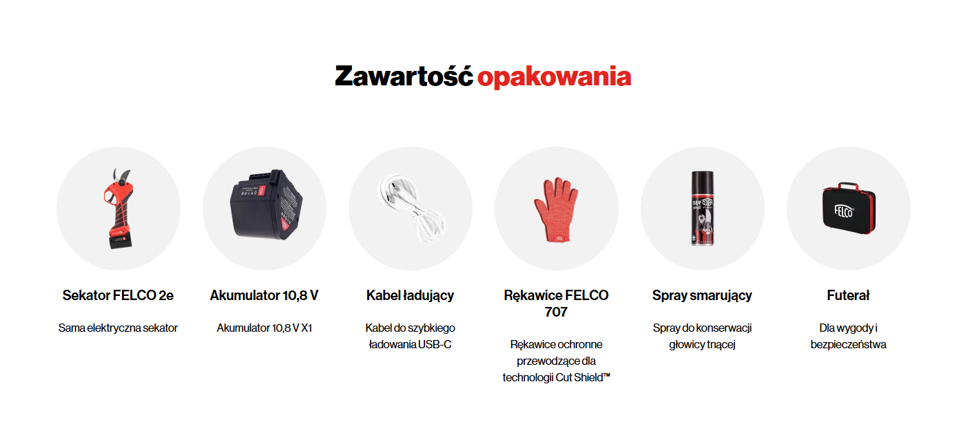 Specyfikacja techniczna FELCO 2E: klasyk od Felco w elektrycznym wydaniu: